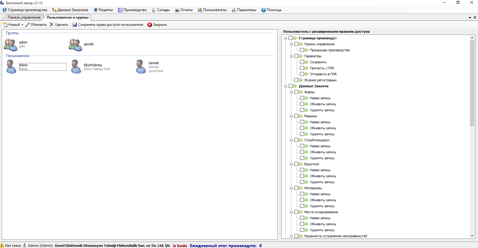 В итоге на сегодняшний день компания ELKON представляет для своих покупателей АСУ ТП с обновленным программным и аппаратным обеспечением с детальным контролем и учетом состояния узлов и агрегатов: